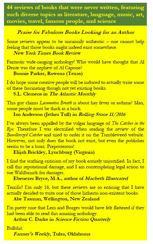 FABULOUS BOOKS LOOKING FOR AN AUTHOR is a satirical anthology comprising